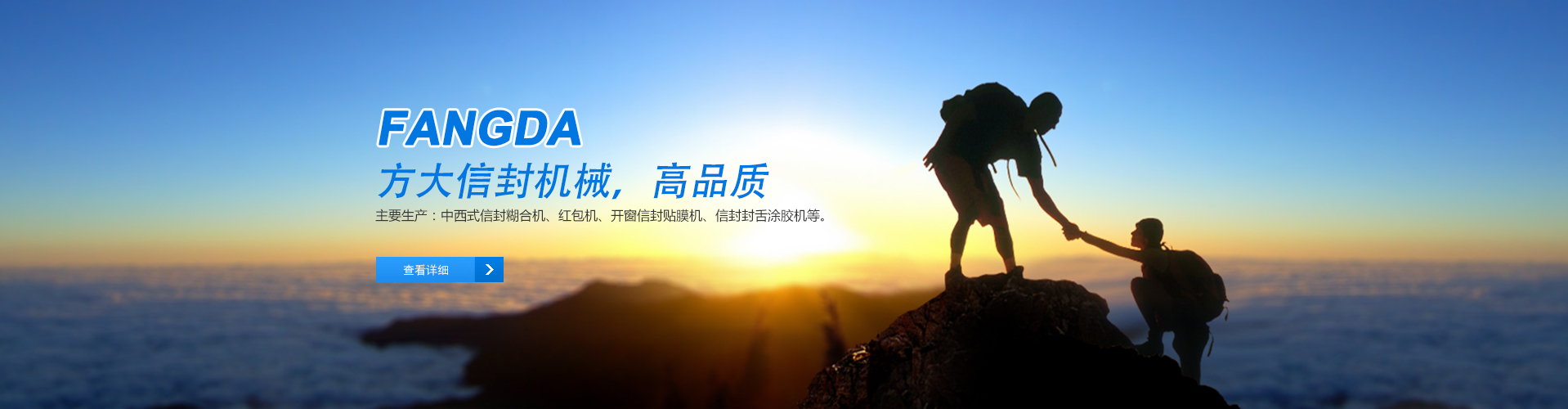 瑞安方大信封機械有限公司,是專業(yè)生產信封機糊合設備系列產品的企業(yè),主要產品有:中西式信封糊合機、紅包機、開窗信封貼膜機、信封封舌涂膠機等。實力來自規(guī)模,品質源自專業(yè)。我廠擁有專業(yè)老練的工程設計人員,經驗豐富的生產安裝人員,嚴謹認真的質量檢驗人員,從而保證了所生產機械的優(yōu)良品質。此外,我廠也將從技術上、性能上不斷改進提高,以更好的滿足客戶的需求。“客戶至上,服務為本”是我廠長期一貫的服務理念,從安裝、測試、保養(yǎng)、維修等售后服務,我們會給予客戶充足的信息資訊與技術支持,因此在業(yè)界獲得良好的口碑及信譽,您的滿意是我們的榮耀!歡迎您來電查詢、來人參觀,我們一定能給你滿意的答復!秉承“顧客至上,銳意進取”的經營理念,堅持“客戶為先”的原則為廣大客戶提供溫馨的服務。歡迎惠顧!